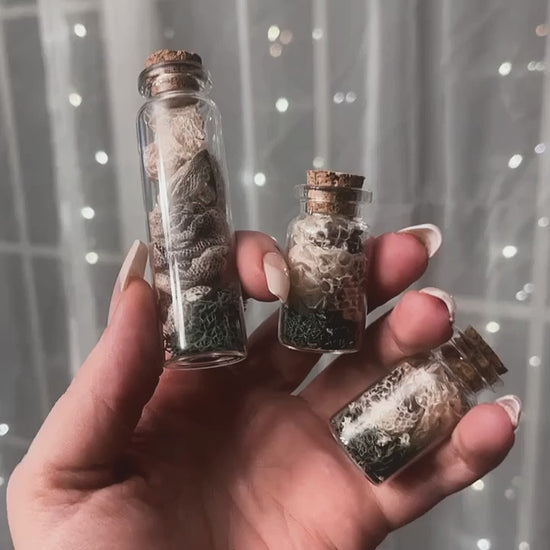 Perfect for ritual work or a little bit of altar decor. Dressed up with a base layer of moss & sprinkled with baby’s breath blossoms.